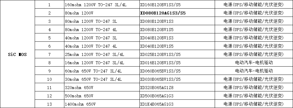 XD080B120AG1S3/S5 芯達茂 SiC MOS