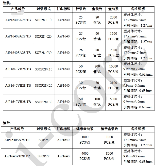 AiP1640SA28:SOP28封裝,適用于需要較小封裝尺寸的應用。