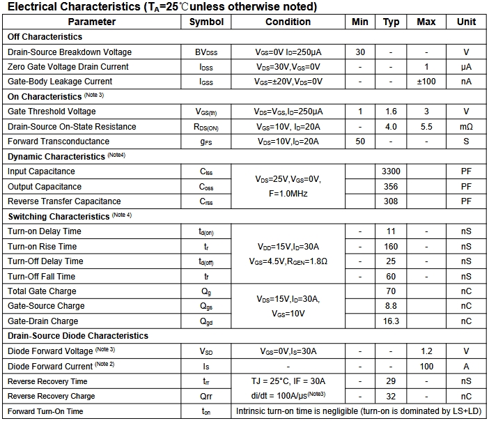 RDS(ON)在電壓為10V時小于5.5mΩ(電壓為4mΩ)