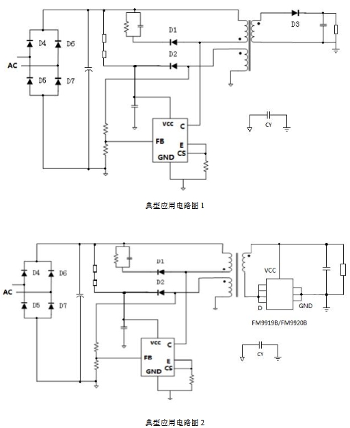 FM3783GA/FM3783GB的典型應用電路簡單明了,外圍元件少,便于設計和調試。以下是其典型應用電路示意圖: