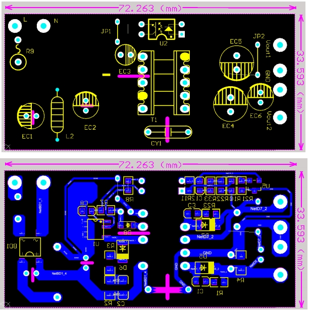 實(shí)物圖展示了BPA8604D電源模塊的緊湊結(jié)構(gòu)和簡(jiǎn)潔布局。整個(gè)電路板采用了單面板設(shè)計(jì),尺寸僅為72mm×33.5mm,適合安裝在空間有限的設(shè)備中。電路板上的元件布局合理,走線(xiàn)清晰,便于生產(chǎn)制造和維修。通過(guò)實(shí)物圖,我們可以直觀(guān)地感受到BPA8604D電源模塊的高效能和可靠性,其簡(jiǎn)潔的設(shè)計(jì)理念和精湛的制造工藝,使其成為了現(xiàn)代電源設(shè)計(jì)的典范之作。