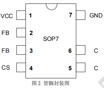 SZ2525X 采用 SOP7 封裝,這種封裝形式具有體積小、散熱性能好等優點,非常適合應用于空間有限的電子設備中。其封裝尺寸精確,引腳布局合理,便于在 PCB 上進行安裝和布線。此外,芯片的管腳設計也充分考慮了實際應用的需求,例如 VCC 管腳需要就近接旁路電容,以確保電源的穩定供應;CS 管腳用于電流采樣,能夠精確地檢測輸出電流;FB 管腳則用于反饋電壓輸入,通過與內部基準電壓的比較來實現恒壓控制。