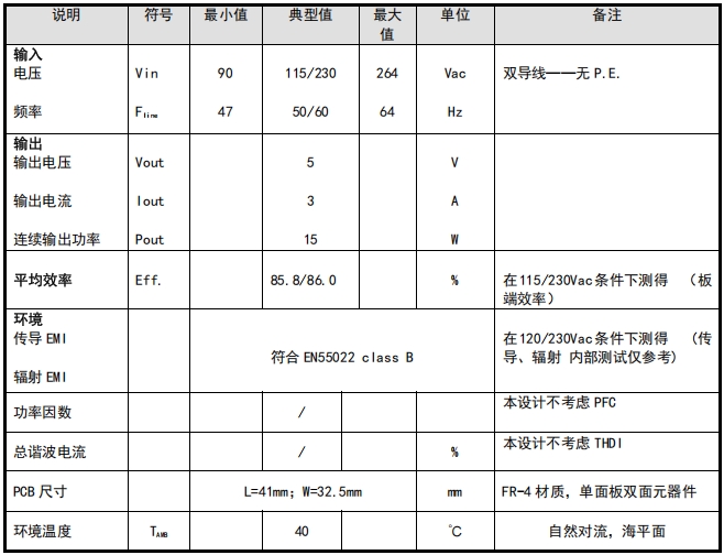 下表給出的是設計的最低可接受指標,實際性能在后續的測試結果部分給出。