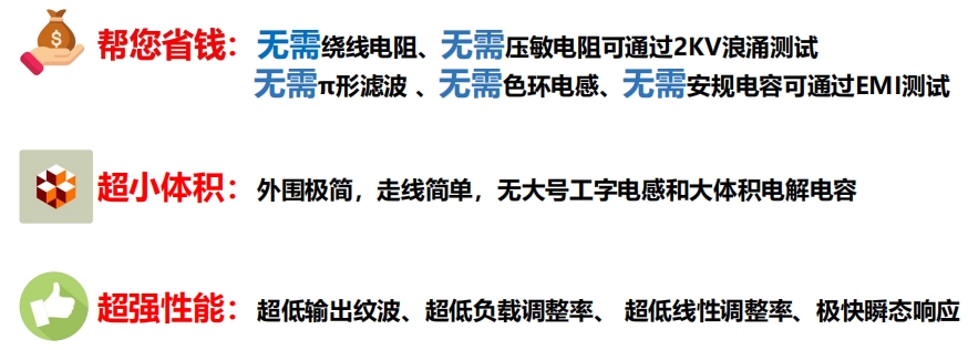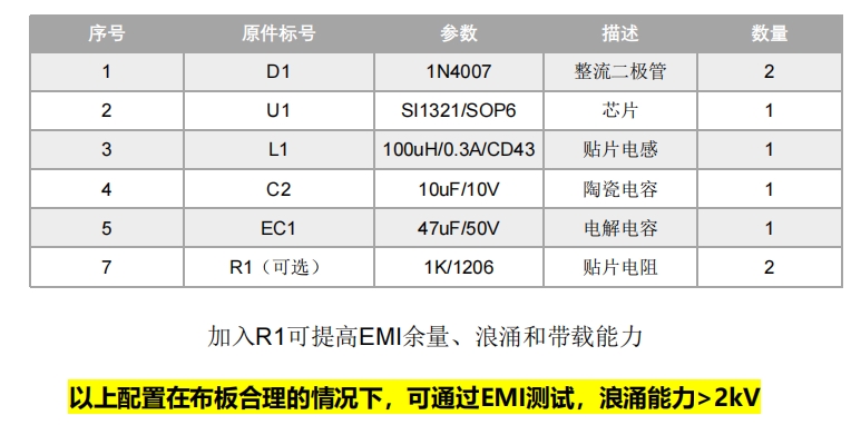 SI1321X系列無需繞線電阻、壓敏電阻,即可通過2KV浪涌測試;無需π形濾波、色環電感、安規電容,也能輕松通過EMI測試。這種設計極大地簡化了電路設計,減少了元件數量,降低了成本,同時也提高了系統的可靠性和穩定性。