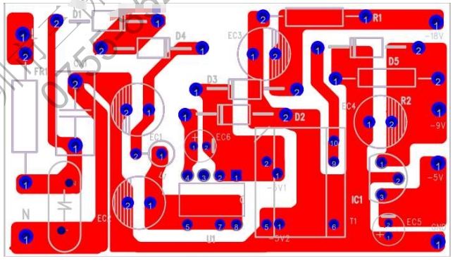 PCB設(shè)計對于電源的性能和穩(wěn)定性至關(guān)重要。本方案采用單面板設(shè)計,元件分布合理,布線簡潔明了。以下是PCB的頂面和底面布局圖: