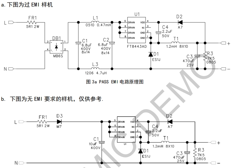 內置高壓啟動功能,起機時間短,典型值僅為50ms,能夠快速響應負載變化,確保電源的穩定輸出。此外,FT8443AD還具備優越的動態響應能力,能夠有效應對負載突變等情況,保障電源系統的穩定運行。