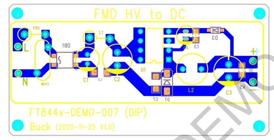 FT8443AD采用BUCK結構,并使用工字電感,極大地簡化了外圍電路設計。這種設計不僅減少了元件數量,降低了成本,還提高了電路的可靠性和穩定性,使得PCB布局更加簡潔,調試過程也更為方便。
