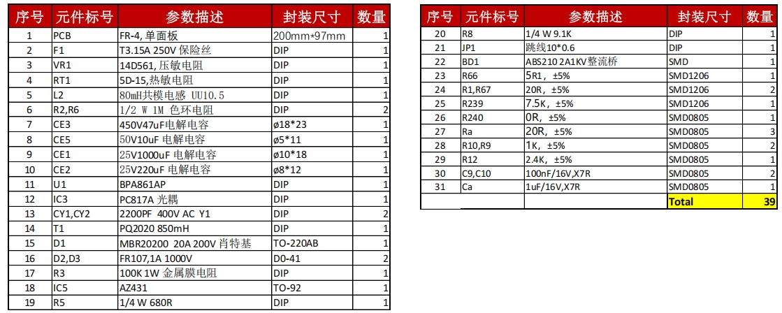 以上BOM清單涵蓋了電源方案中所有關(guān)鍵元件的詳細(xì)信息,包括元件型號、參數(shù)描述、封裝尺寸以及所需數(shù)量。這些元件的選擇充分考慮了性能、可靠性和成本的平衡,能夠滿足電源設(shè)計的各項要求。