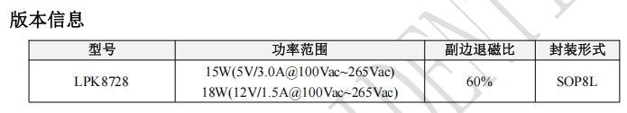 在保護功能方面,LPK8728提供了全面的保障,包括VCC鉗位/欠壓保護、FB腳電阻開短路保護、輸出短路保護、輸出過壓保護以及過溫保護等。這些保護功能確保了芯片在各種異常工作條件下的穩定性和可靠性。LPK8728采用SOP8L封裝,具有良好的散熱性能和易于集成的特點。