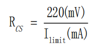 Rcs電阻的選擇需綜合考慮負載電流和電感電流紋波,并留有余量。由于內(nèi)部比較器延遲,實際CS_TH略高于芯片內(nèi)部200mV基準電壓。CS電阻計算公式為:
