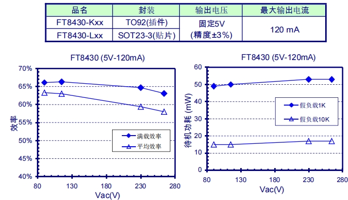 FT8430的快速啟動時間僅為50ms,這意味著在電源接入后,設備能夠迅速進入工作狀態,減少了用戶的等待時間。同時,其低空載功耗僅為50mW,這對于小家電產品來說是一個巨大的優勢,能夠在不使用時最大限度地減少能源浪費,符合現代節能理念。
