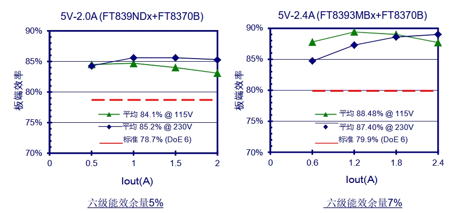FT8370X系列芯片在不同負載條件下均能保持高效率。例如,FT8370B在2.0A - 2.4A輸出范圍內,效率可達90% @ 115V和90% @ 230V。FT8370CP在2.5A - 3.4A輸出范圍內,效率可達88.48% @ 115V和87.40% @ 230V。