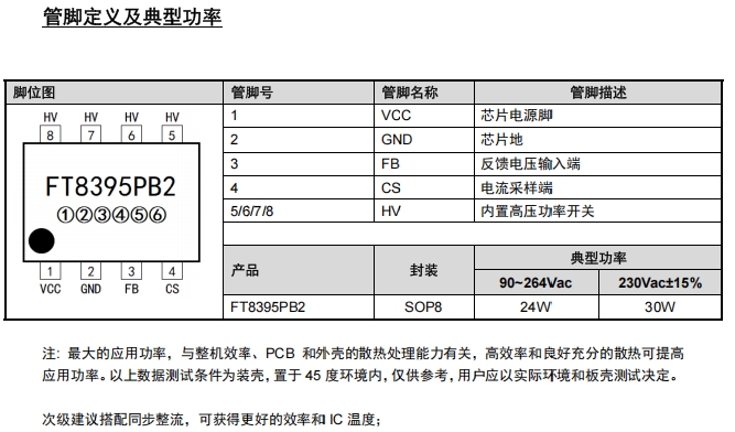 FT8395PB2 12V200mA適配器電源芯片管腳定義及典型功率詳細解析