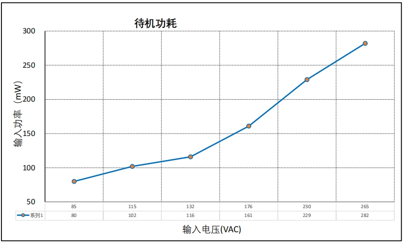待機(jī)功耗PSTDBY-229-mW230VAC,包含 1kΩ 假負(fù)載
