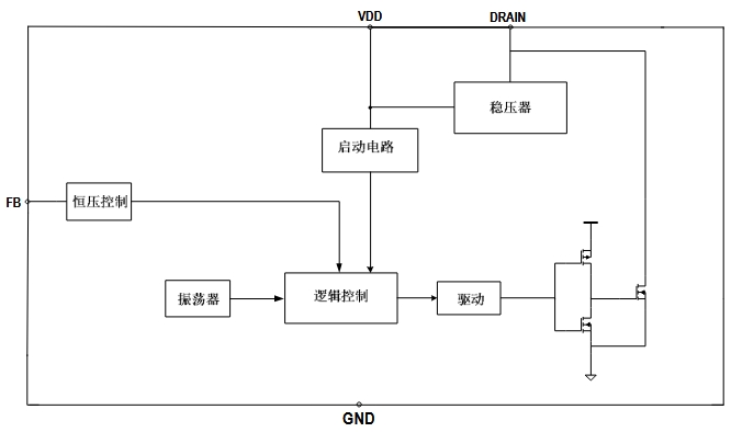 內(nèi)置高壓啟動(dòng)與 CS 電阻,省去啟動(dòng)電阻與電流采樣;
