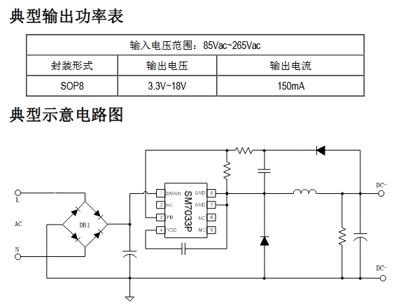 在 IoT 小家電、智能面板或傳感節(jié)點(diǎn)里,工程師最怕的就是“待機(jī)電源”——功率不大,卻占掉寶貴的 PCB 面積和 BOM 成本。明微推出的 SM7033PK,用一顆 SOP-8 封裝就把 85-265 VAC 輸入、3.3-18 V/150 mA 輸出的恒壓方案做到了極致精簡:整流橋之后,只需 5 個(gè)外圍元件即可上電運(yùn)行,真正讓“小體積”與“低成本”兼得。