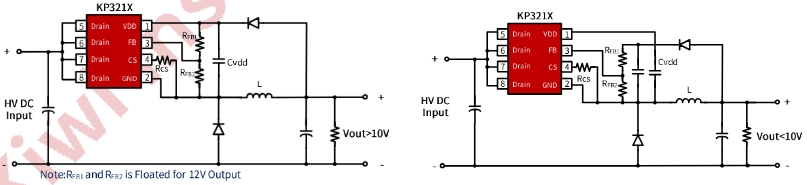 現(xiàn)在:KP321X + 電感 + 輸出電容 + 2 顆電阻(5 顆)即可輸出 12V/200~900mA,待機(jī) <50mW。KP321X 集成 650V MOSFET、高壓啟動(dòng)、多模式 PWM、全套保護(hù),專為 小家電、工業(yè)控制、線性電源替代 而生,默認(rèn) 12V 輸出,F(xiàn)B 腳懸空即可,外圍極簡,layout 一張單層 PCB 就能過 EMI。