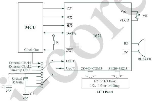 VLCD 引腳用來調整 LCD 工作電壓。